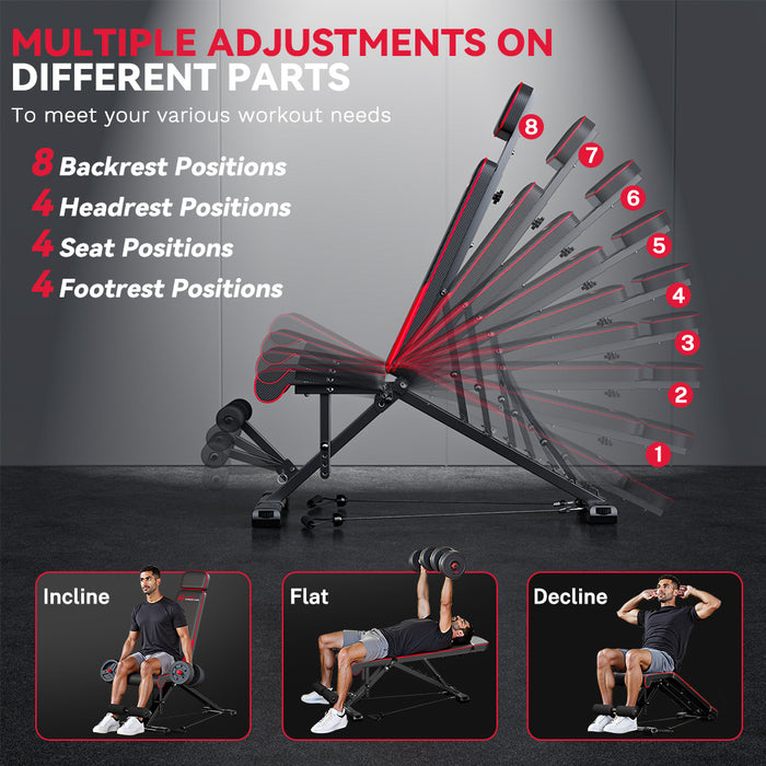 With 8 backrest positions, 4 seat levels, 4 headrest and 4 footrest adjustments, you can customize your workout to target specific muscle groups.