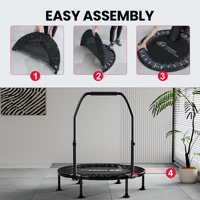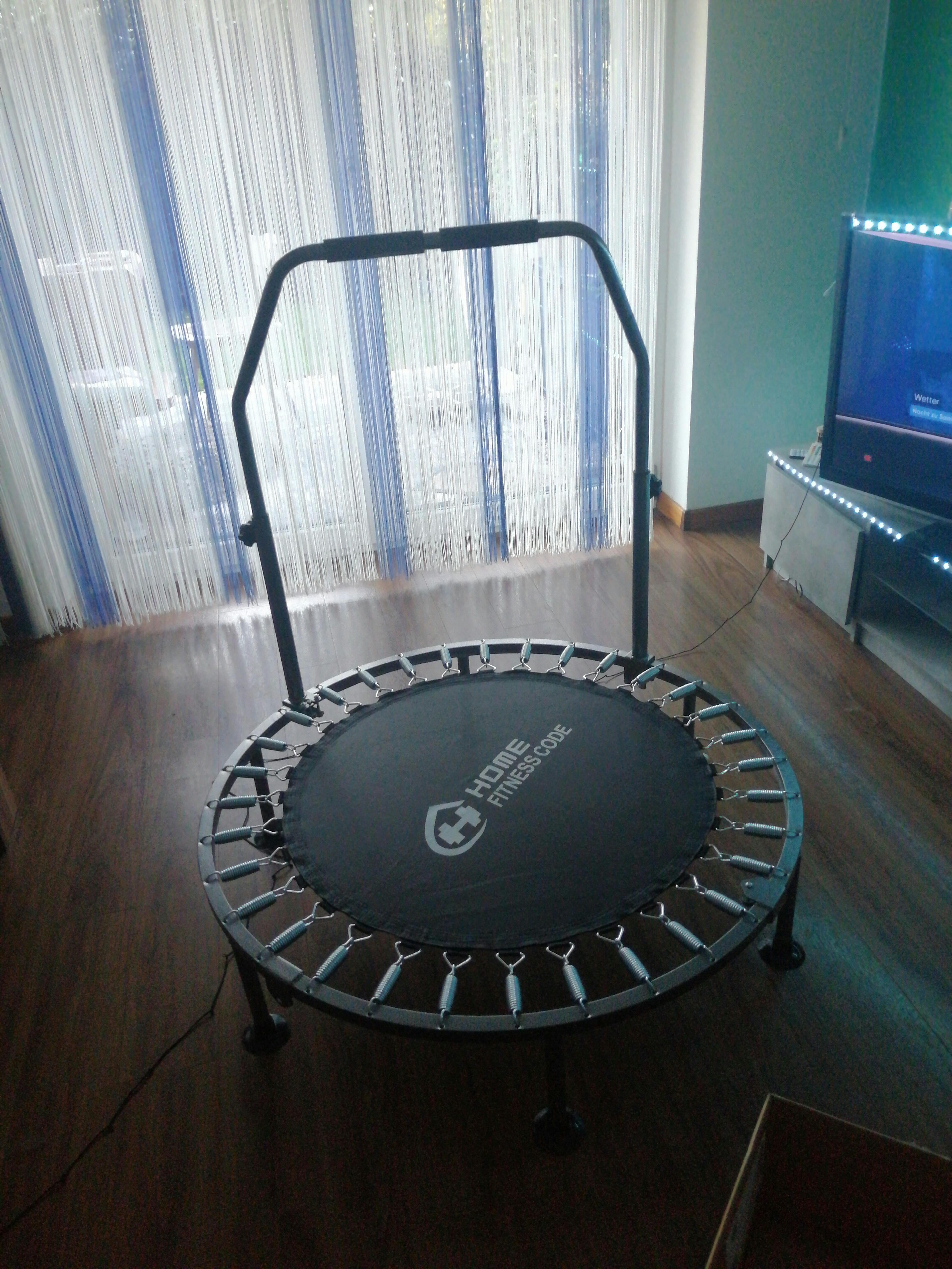 The fitness trampoline can be folded twice which makes the size less to 1/4, convenient to carry and store away.