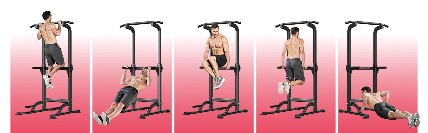 You can do pull-ups, push-ups, dips, train the arms, back, abs or legs, all on this power tower dip station.