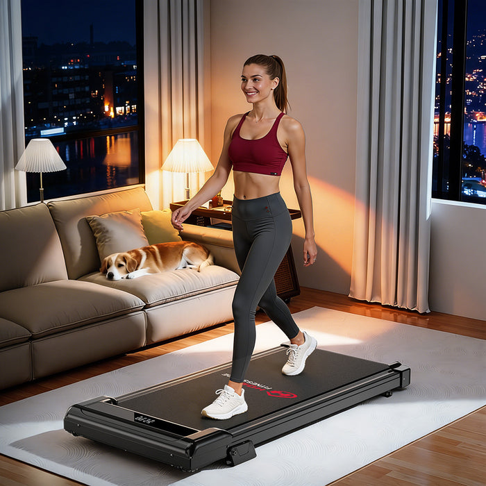 The compact design fits comfortably in smaller spaces. You can easily store the treadmill under a sofa or bed or place it against a wall when not in use.